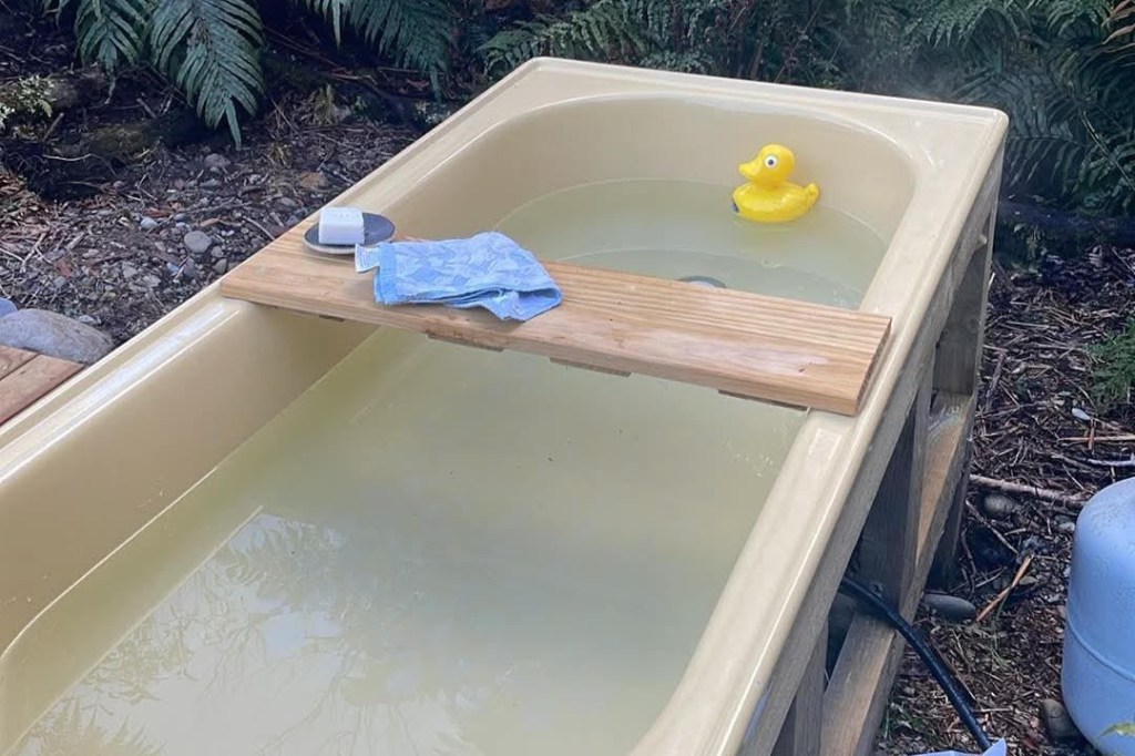 There’s a certain kind of grime that accumulates after a day working in the West Coast bush. It’s a mix of peaty earth, sweat, bush debris and insect repellant. A quick splash from a bucket to freshen up for happy hour at the end of the day just doesn’t cut it. In the absence of a shower we wanted total immersion, a way to literally wash the day away before relaxing beside the fire with a cold beer or glass of wine.